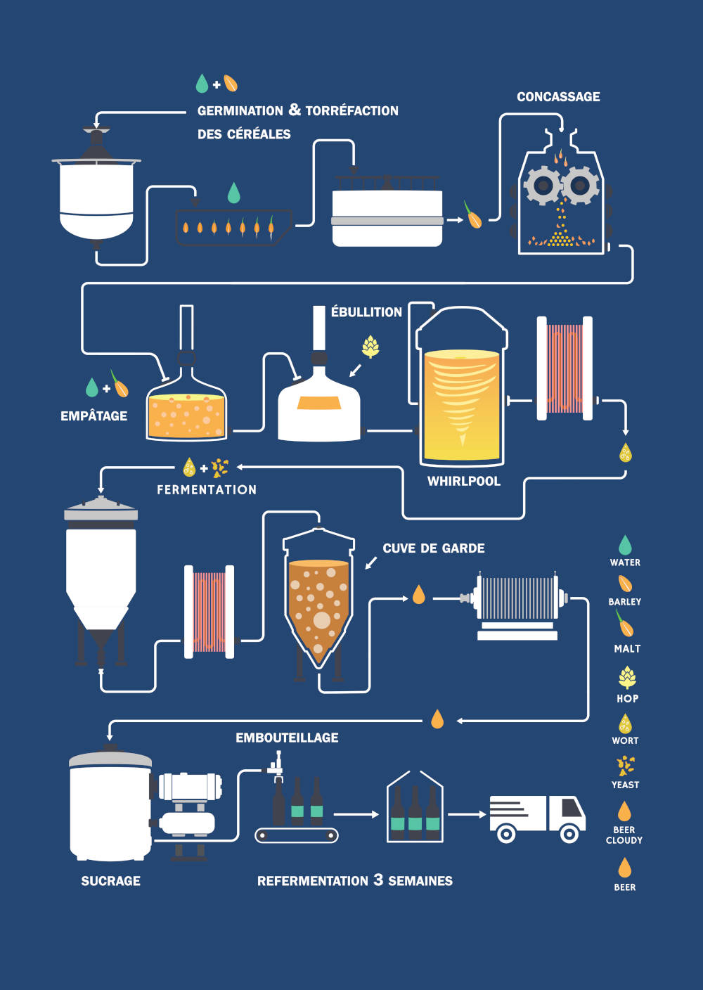 Pour faire très simple, le processus de brassage d’une bière est le suivant : on chauffe de l’eau à laquelle on ajoute du malt, puis du houblon, on attend que cela refroidisse et on ajoute les levures.