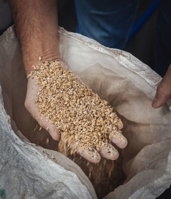Tout d’abord, il faut concasser le malt en petits morceaux afin de faciliter l’extraction des sucres naturels qui serviront à produire les bulles et l’alcool.